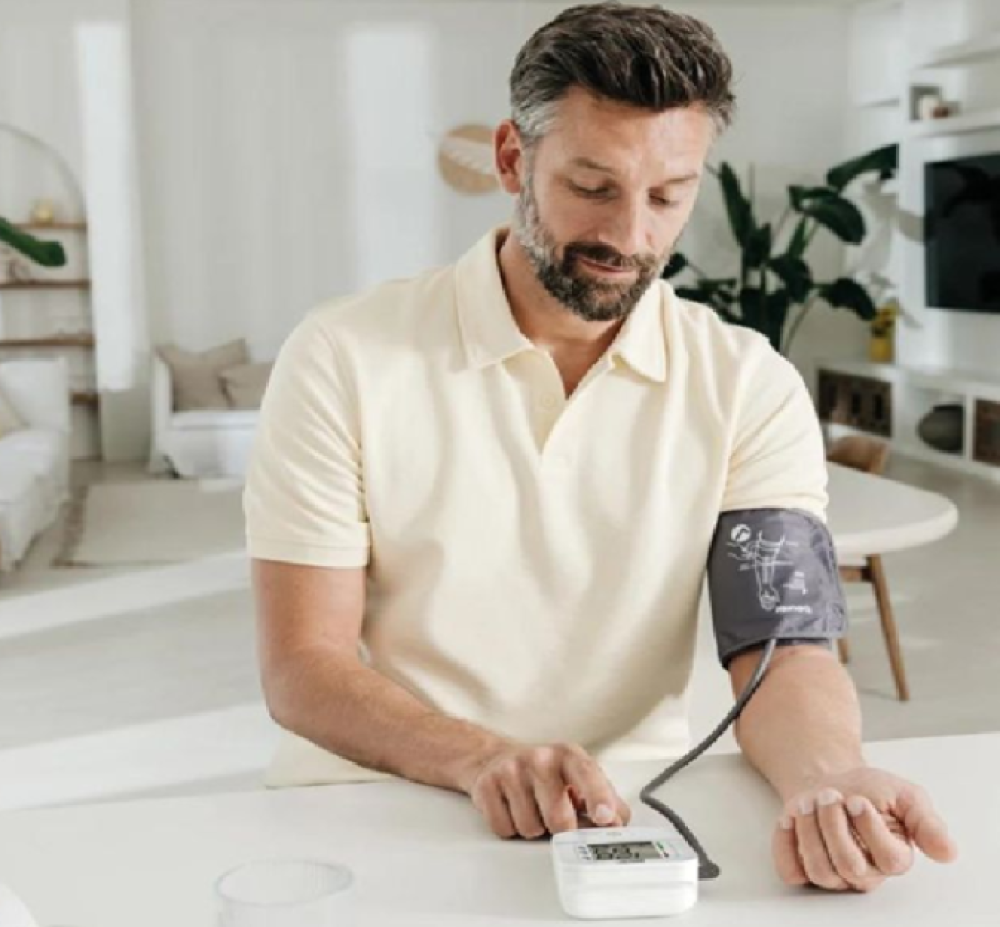 يعرض قياسات ضغط الدم الانقباضي والانبساطي ومعدل النبض على شاشة واضحة، مع مؤشر لتصنيف النتائج حسب معايير منظمة الصحة العالمية.