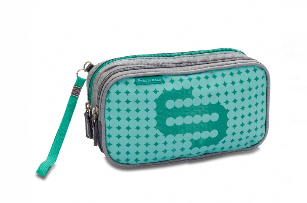 حقيبة أدوات النظافة الحرارية لمرضى السكر. مصممة لحمل جميع الأدوات الأساسية لعلاج مرض السكر. هيكلها المكون من حقيبتين يجعل من السهل تخزين وتحديد موقع أدوات القياس (جهاز قياس السكر، شرائط الاختبار، الإبر) بالإضافة إلى أقلام الأنسولين، والتي سيتم وضعها في الحقيبة الحرارية.
