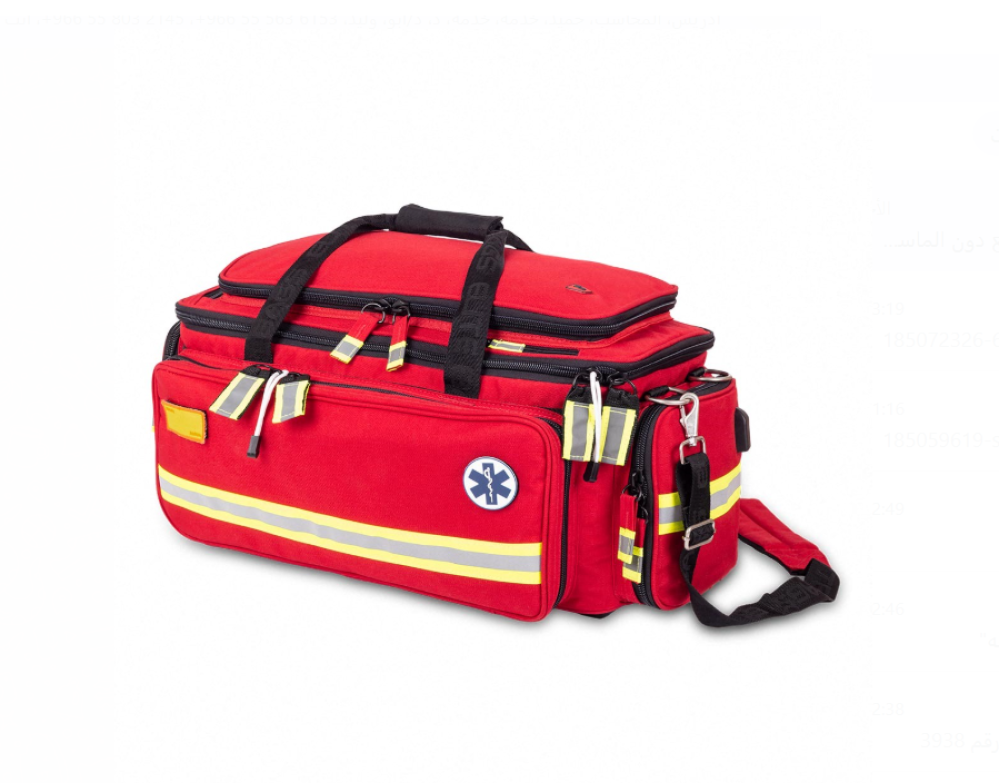 - شنطة الإسعافات المتقدمة مزودة بحزام قصير لحملها باليد وحزام طويل مزود بوسادة إسفنجية لحمل الشنطة على الكتف.