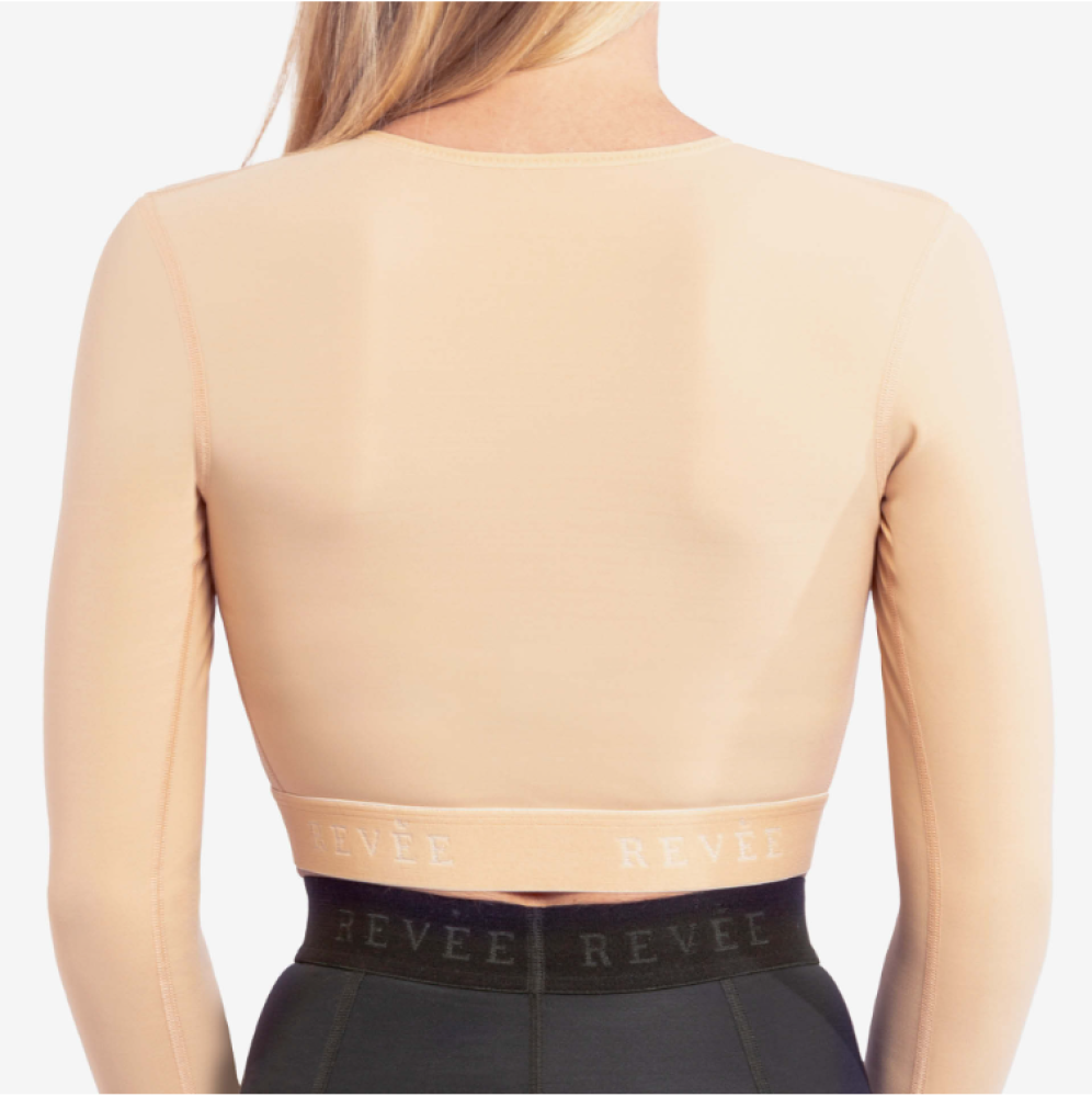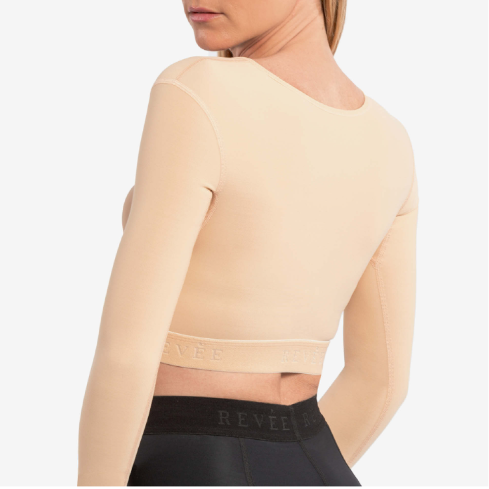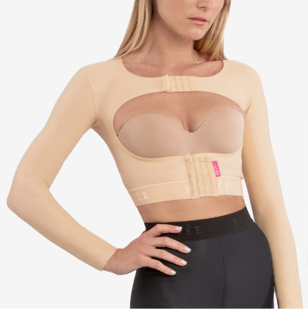 مشد طبي إيطالي من Revée موديل REV.203، مصمم لتغطية الذراعين بالكامل من الكتف حتى المعصم، بالإضافة إلى دعم كامل لمنطقة الظهر. مثالي بعد عمليات شد الذراعين أو شفط الدهون، حيث يساعد على تقليل التورم، وتحسين شكل الذراعين والظهر، وتسريع عملية الشفاء.